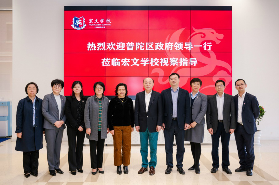 On 25 March, Wang Jue, deputy district chief of Putuo District of Shanghai, along with the leaders of the District Education Bureau and the District Confidential Bureau, inspected the Shanghai campus of Hongwen School, a flagship school under Far East Horizon. He conducted in-depth research on the faculty, management system and logistical support of the campus, and had cordial talks with Wang Ruisheng, deputy secretary of the Party Committee and vice president of Far East Horizon.