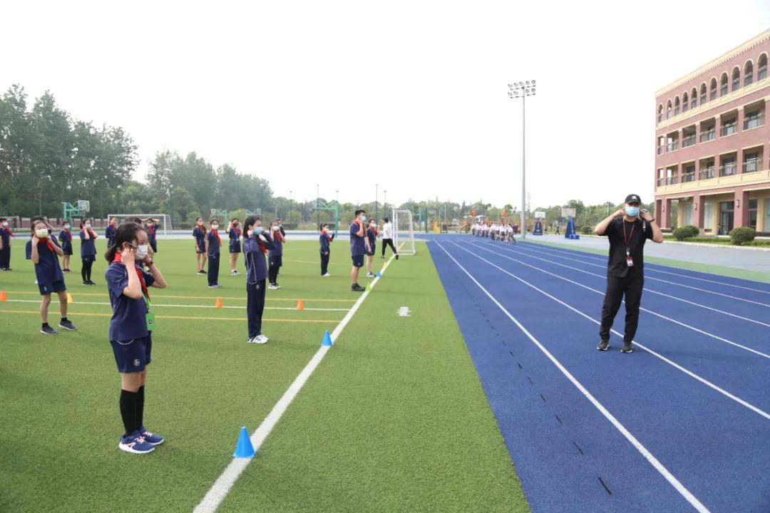 On the first day, the students lined up neatly and at intervals on the playground. Under the guidance of the teacher, they learned the school epidemic prevention process.