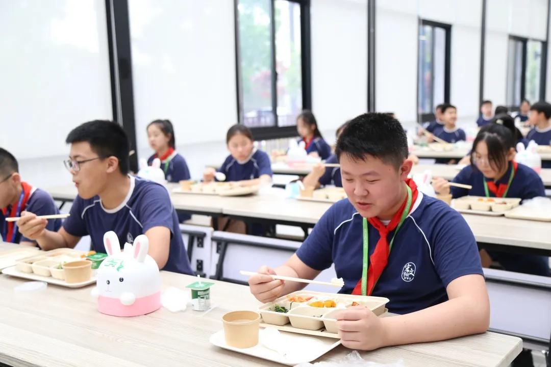 Each student should enter the restaurant by quequing up at intervels and have meals in strict accordance with the requirements of the epidemic prevention process. After taking a carefully matched nutritious lunch, they should sit one by one.
