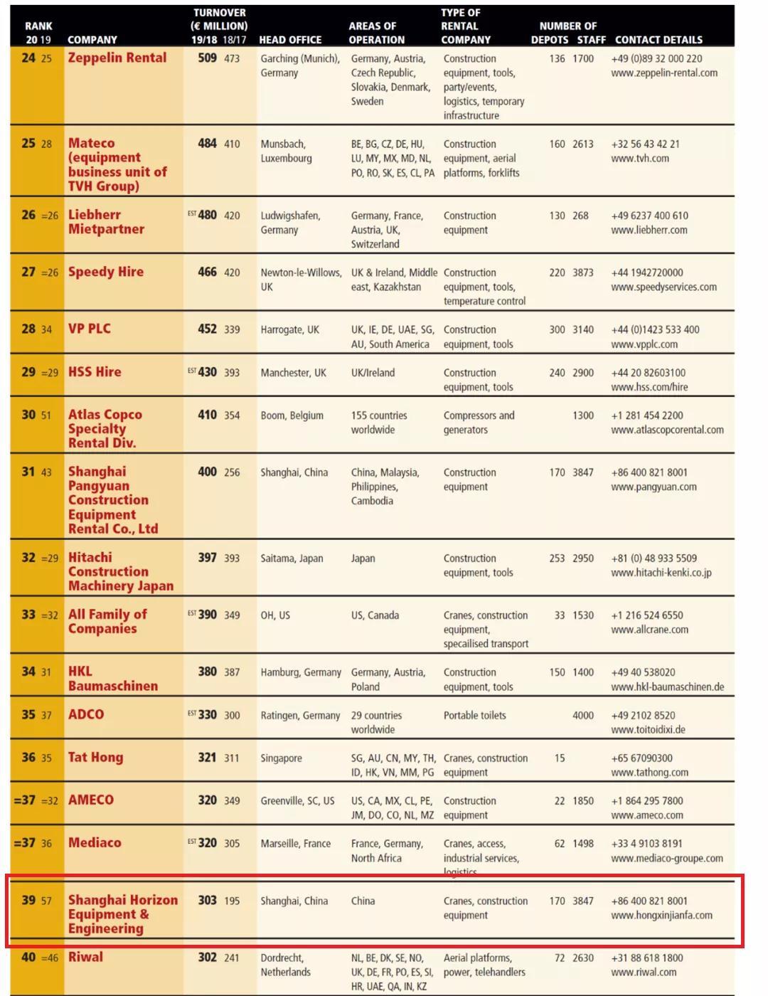 Ranking 39th in World Top 100 Renters! Horizon Construction Development's International Ranking Reaches New High