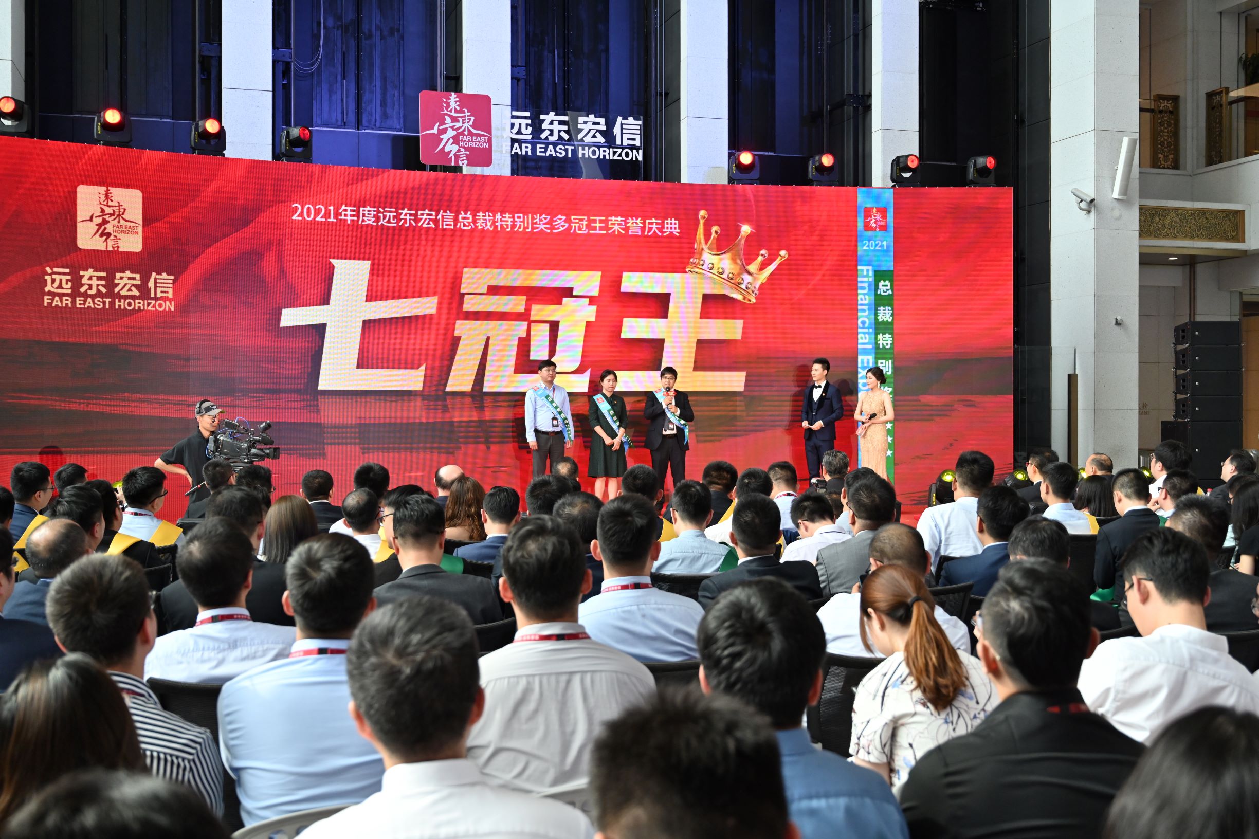 Recently, Far East Horizon Plaza was star-studded. Hundreds of Far Easterners gathered together to witness the 2021 Far East Horizon President’s Special Award “Multi-Crown” Honorary Ceremony. Kong Fanxing, vice chairman, executive director and chief executive officer of Far East Horizon, presented awards to the winners and then delivered a speech.