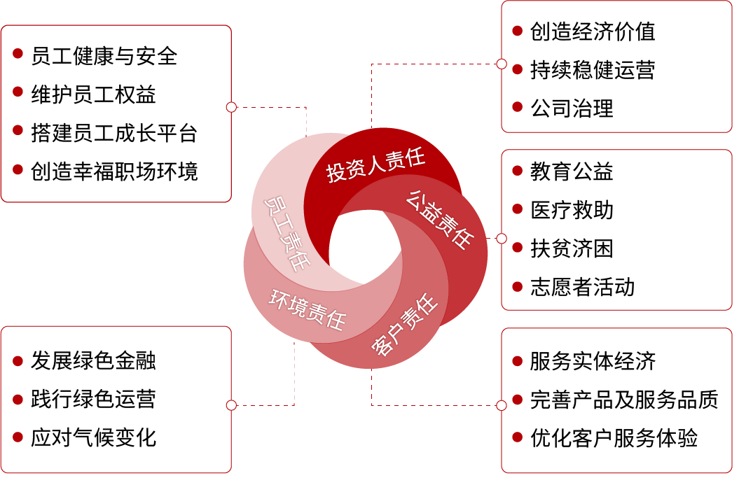 As a comprehensive group which spans both finance and industries, Far East Horizon has the mission of “Integrating global resources, Promoting China’s industries”, adhering to the core responsibility concept of “creating value sharing and co-creating harmonious development”, with constantly innovating and developing integrated industrial operation services. At the same time, Far East penetrates in five social responsibility areas, which include investor, customer, employee, environmental and public welfare responsibility to promote the healthy, sustainable, stable and harmonious development of the industrial economy and the entire society, creating value for all stakeholders.