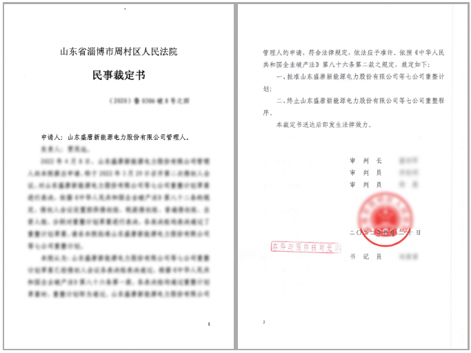 The successful launch of the Bankruptcy Reorganization Solution will not only lay a solid foundation for the rebirth and development of the energy company, but also contribute to the local employment level and stable energy supply. Therefore, the Solution was unanimously recognized by relevant creditor financial institutions, bankruptcy administrator and local Photovoltaic Industry Association, passed the vote in the conference of creditors and original enterprise investors with overwhelming support, successfully obtained the ruling of the local court, and highly affirmed by Zibo Economic Development Zone Management Committee.