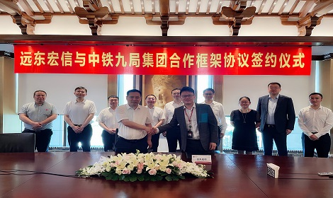 近日,远东宏信与中铁九局集团有限公司(以下简称“中铁九局”)在远东宏信广场举行合作框架协议签约仪式。双方将在基建项目投资、供应链金融、建设设备租赁等方面开展深入合作。