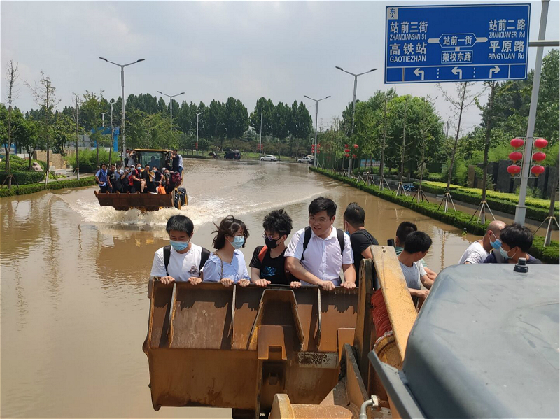 7月24日,申建港终于买到了新乡前往郑州的高铁票。公共交通中断,他骑了1个多小时的共享单车到达车站附近,因车站地势低洼,只能由铲车运送抵达。“站在上面非常吓人,附近积水最深的地方可以淹没轿车车顶,铲车开过时还能看到那些车在浮动”,回想起来他仍心有余悸。