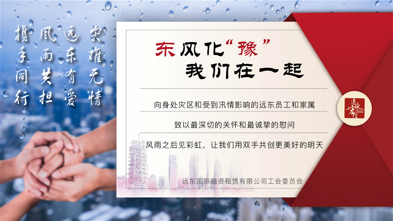 当前,救灾还在持续,暴雨时有发生,各战线远东人将坚定信念,守望相助,直面艰险,百折不挠。相信在大家的共同努力之下,风雨之后终现彩虹!