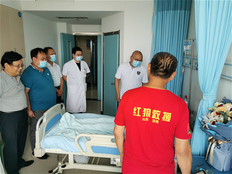 “感谢你们远道而来!医院会提供免费救治,请安心养伤,早日康复。”新乡同盟医院院长刘太江在探望山东淄博红狼救援队受伤队员时说道。