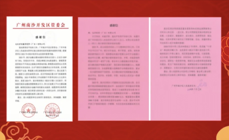 04 Fehorizon Received a Thank-you Letter from the Government and Head of Nansha Development Zone, Guangzhou