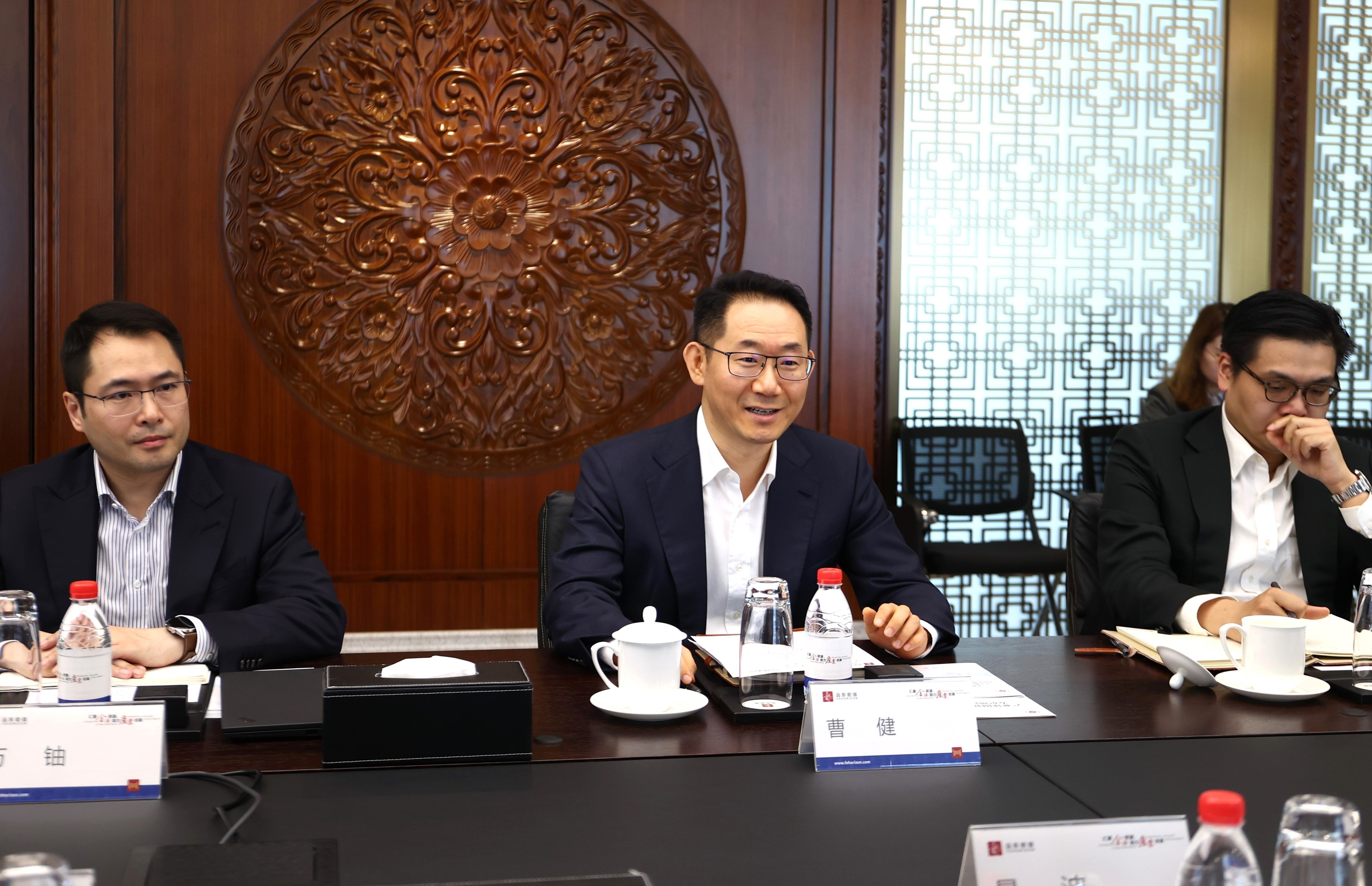 Mr. Cao Jian welcomed the party of Mr. Jing Bo, and introduced the development situation of Fehorizon. As a Hong Kong-invested enterprise, Fehorizon adheres to the “finance + industry” business mode and persists in “serving urban upgrade and serving industrial upgrade.” Over the years, it has remained devoted to serving the development of real economy. In the future, Fehorizon will continue to give play to its “marketization, internationalization and specialization” advantages, strive for extensive integration between domestic and overseas resources, and promote the high-quality development of regional economy, hoping that both parties can further expand the scope of cooperation and realize win-win development.
