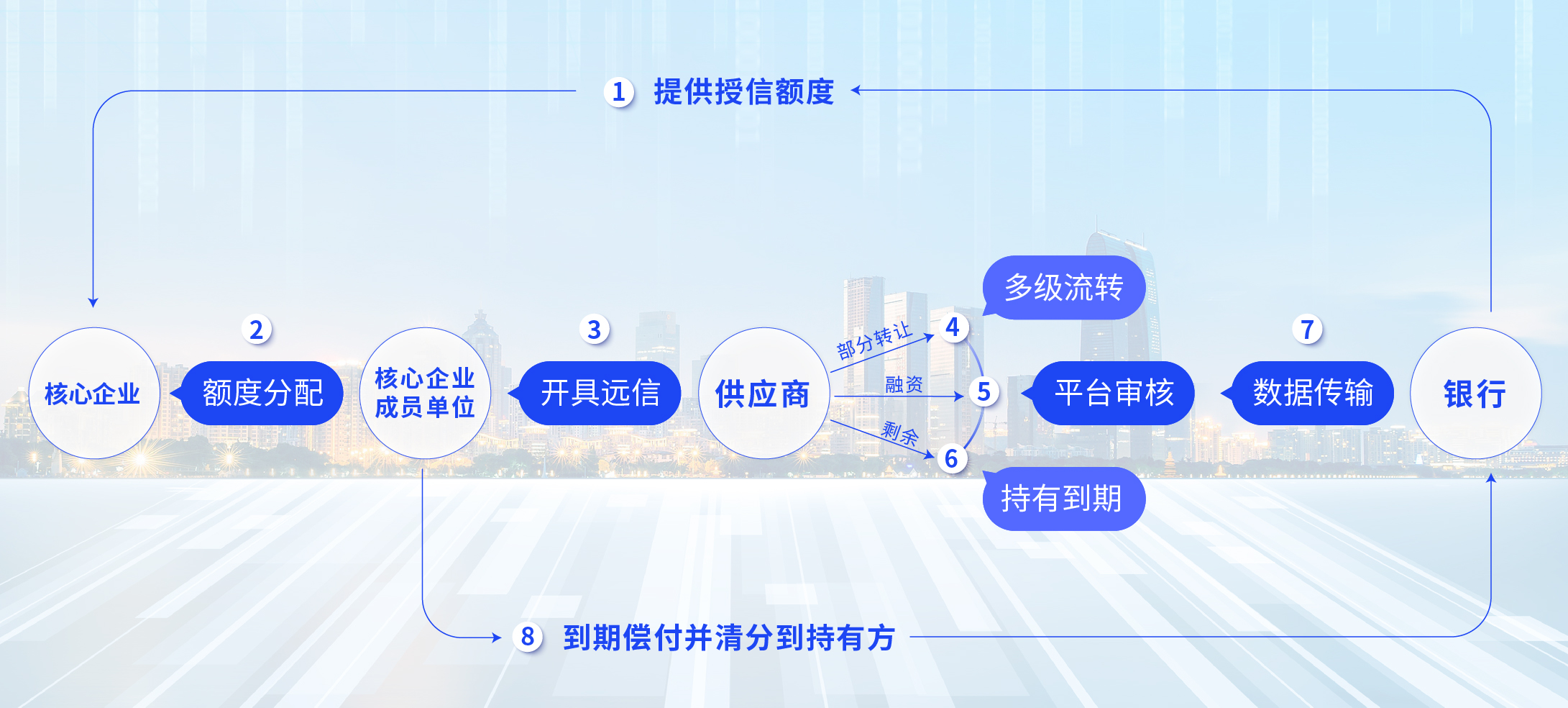 “Honglian factoring”—the star product of the Yuanhong Yilian Supply Chain Technology Platform (the “Platform”) can convert the payables of core enterprises upon confirmation into separable, negotiable and financeable digital claim certificates. The credit transmission based on core enterprises can on the one hand help suppliers, small and medium suppliers in particular, to lower the financing threshold and risk pricing; on the other hand, through multilayered and transmission-type supply chain trade management, it can help financial institutions to effectively improve their risk control ability and efficiency.