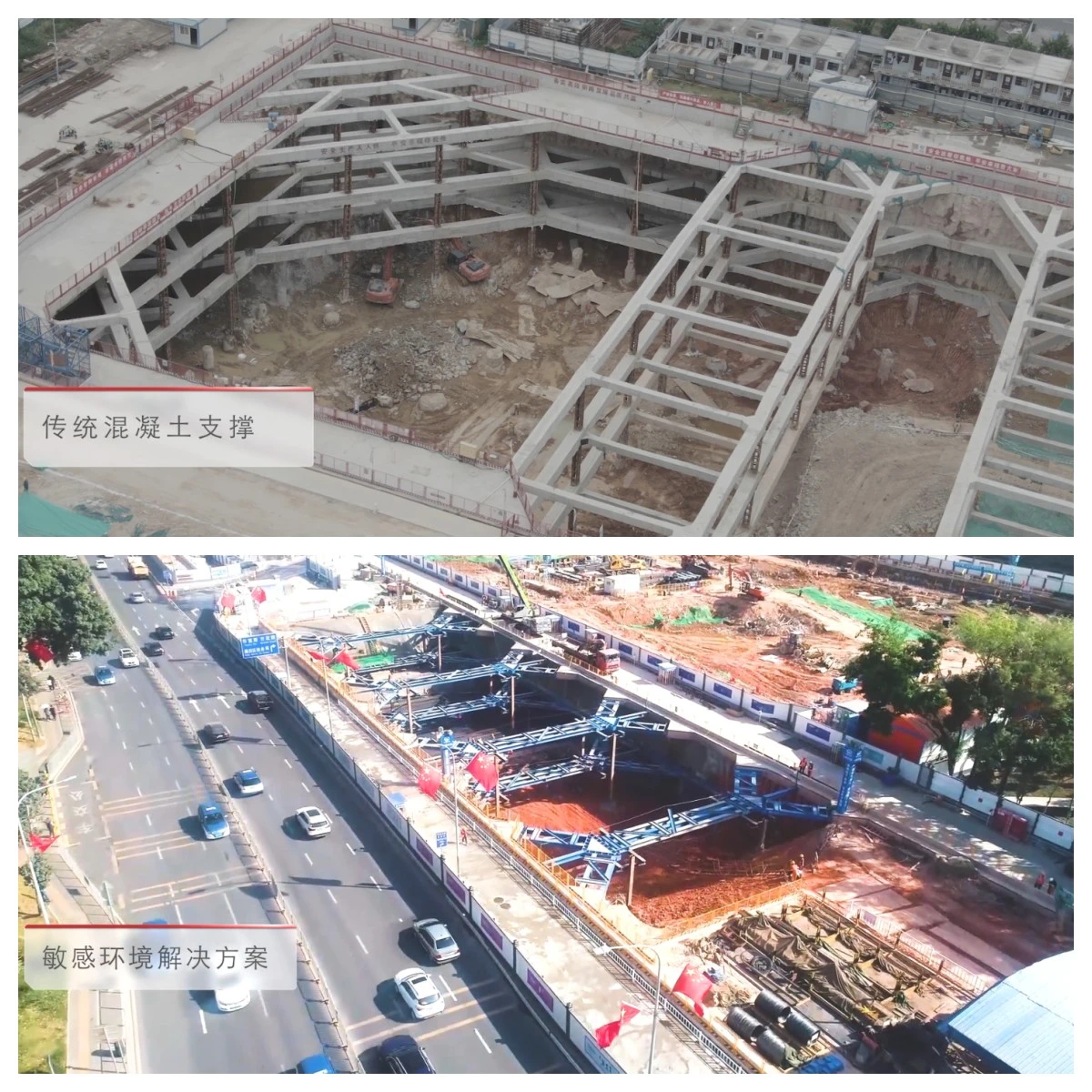 About 10,600 square meters in area, the entire foundation pit is supported by a structure with two structural steels at top and bottom, and uses a total of about 1750 tons of steel, among which 1680 tons of steel can be recycled, resulting in a re-utilization rate of up to 96%. Only 7 meters from the adjacent residential area, the project has achieved effective noise reduction with the green construction method...