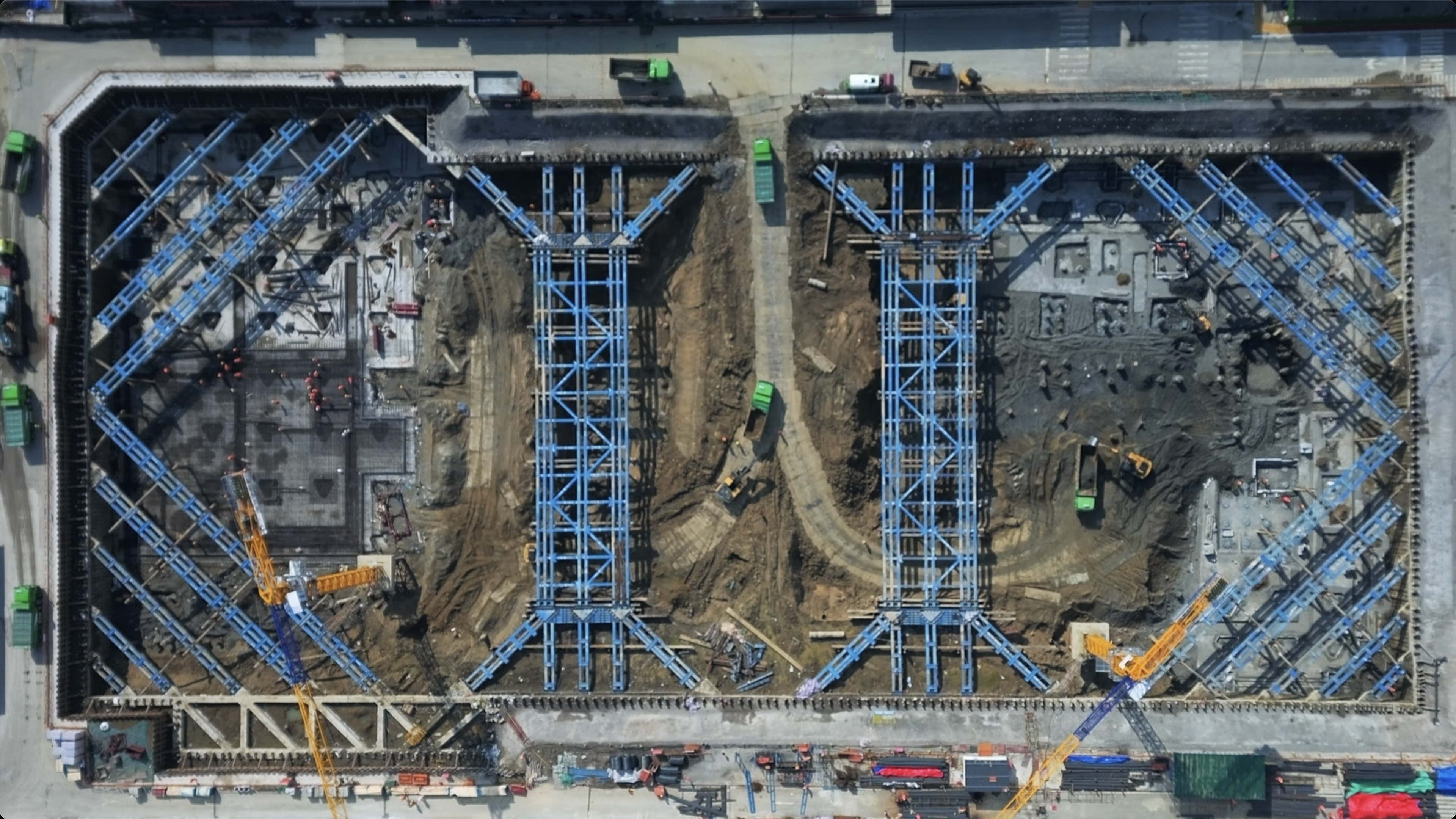 Take the Wuxi R&D Center project of SVOLT Technology as an example. With 14600 square meters of foundation pit area, this project uses more than 1000 tons of steel in total. To achieve safe and green construction, CDHORIZON adopts its self-developed 2nd-generation HC steel structure of truss type, which effectively solves the problem of the bending and instability of single steel support in large-span foundation pit, and forms advantages including convenient installation, easy removal and significant reduction in noise and dust pollution, thus contributing to a green and low-carbon urban environment.