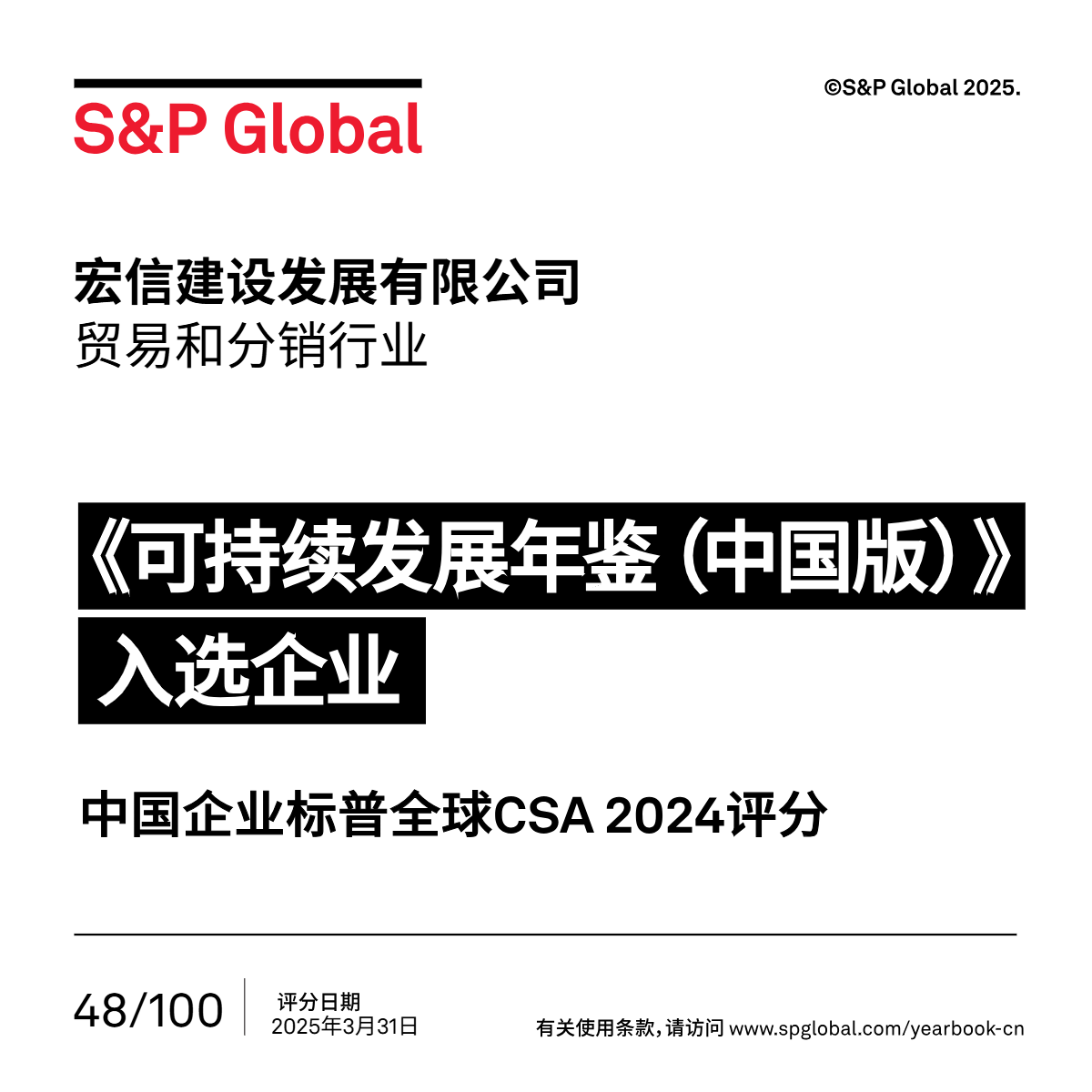 The S&P Global Corporate Sustainability Assessment (CSA) covers sustainability standards across 62 different industries. It quantitatively evaluates disclosure and performance across environmental, social, governance, and economic dimensions, providing a comprehensive reflection of a company's sustainability management capabilities. This is the third year that S&P Global has published the Sustainability Yearbook (China Edition). The yearbook utilizes CSA scores as its data foundation, evaluating 1,662 companies across 60 industries, aiming to recognize Chinese enterprises that demonstrate strong sustainability performance within their respective sectors. Only 164 companies were selected for inclusion in the Sustainability Yearbook 2025 (China Edition).