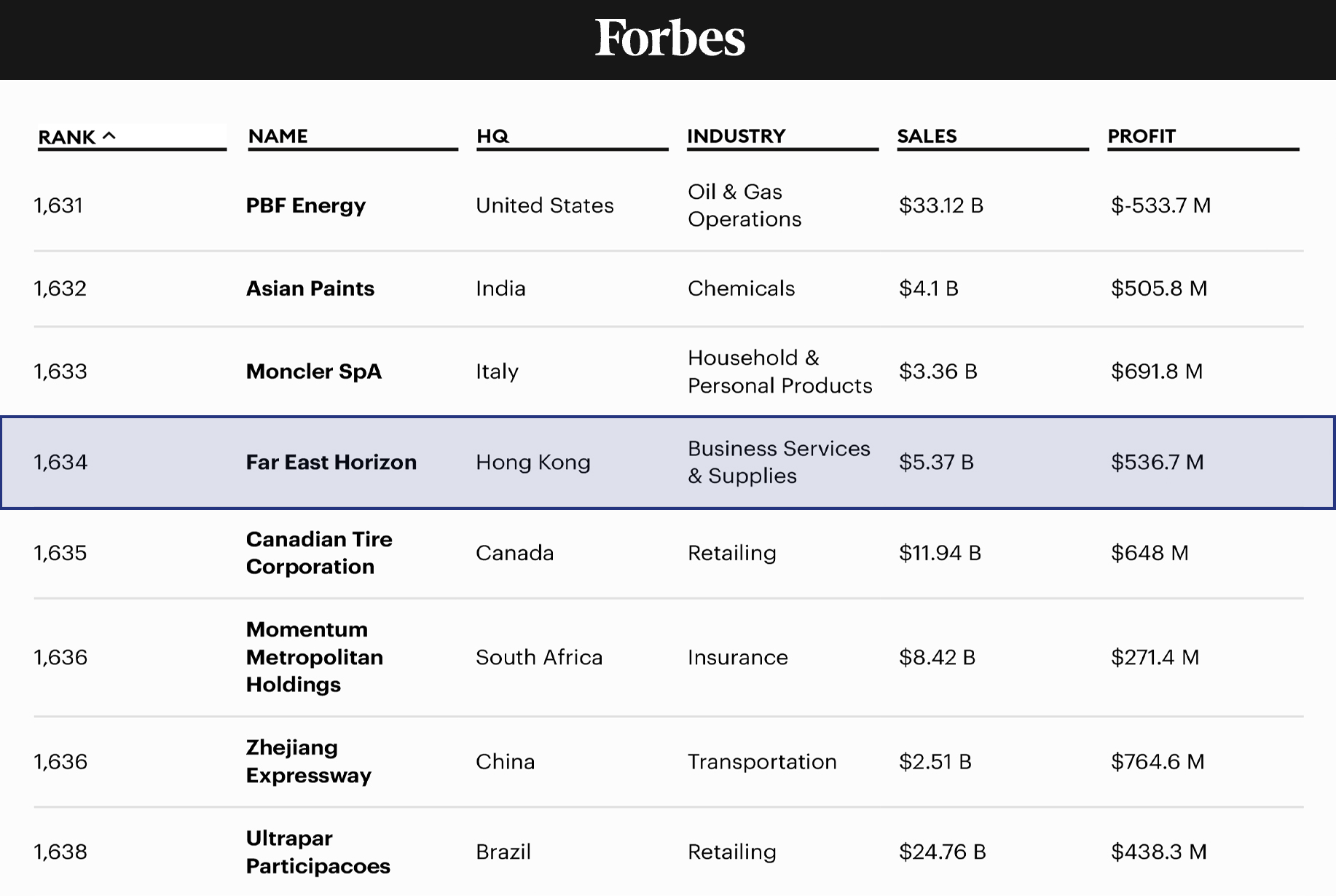 Recently, Forbes magazine officially released the 2025 "Forbes The Global 2000" list. Far East Horizon (03360.HK), with its outstanding global operations and robust comprehensive strength, successfully made the list for the 9th consecutive year, ranking 1634th.
